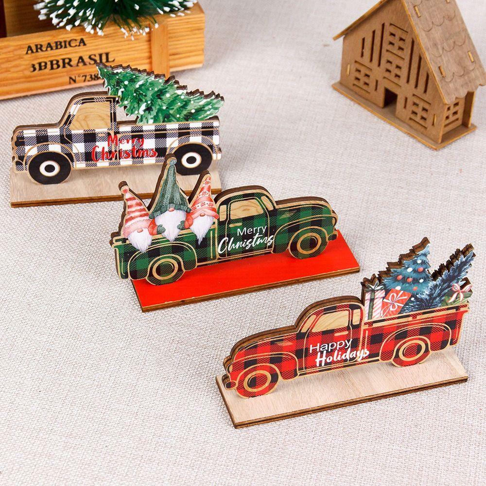 3pcs/set Cartoon Christmas Wooden Car Decorations DIY Christmas Car Ornament New Year 3pcs/set