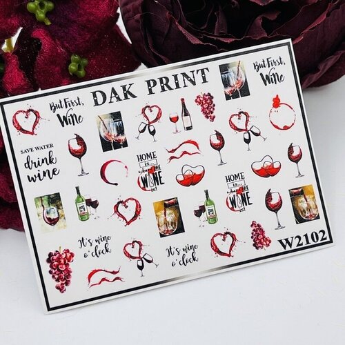 Слайдеры для маникюра (водные наклейки) для дизайна ногтей "Вино и сердце"