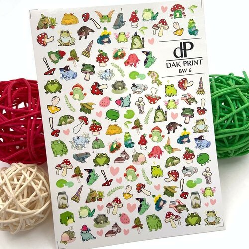 Слайдеры для маникюра (водные наклейки) для дизайна ногтей "Жаба и мухоморы"