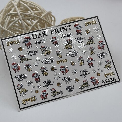 Металлизированные cлайдеры для маникюра (водные наклейки) для дизайна ногтей "Новогодний сет: Дед Мороз и тигр"