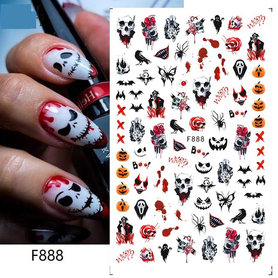 Смешные Хэллоуин Наклейки для ногтей Тренд Слайдер Аниме Симпатичный Призрачный череп Мультфильм Nail Art Украшения Для ногтей Наклейки на ногти