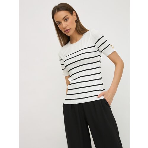 Топ женский Olya Stoff, джемпер летний, в рубчик, лапша, белый, 42-48