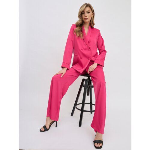 Костюм женский Olya Stoff брючный, атласный, пижамного стиля, розовый, 42