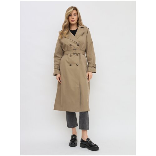 Тренчкот Olya Stoff двубортный, плащ длинный с поясом, тренч женский, демисезонный, кофейный, 44