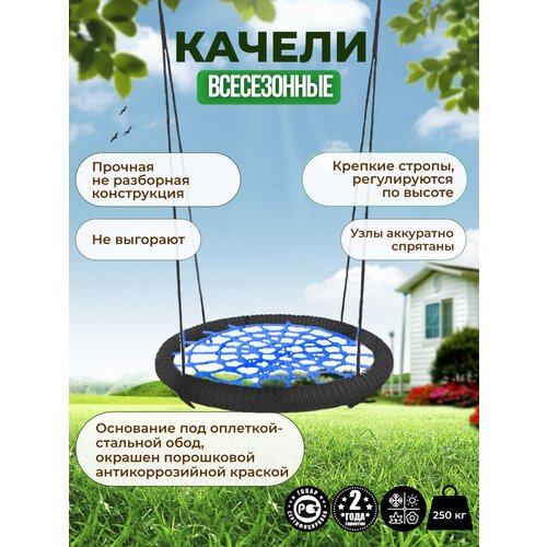 Детские Качели гнездо PREMIUM диаметр 100 см цвет обода Черный цвет сети Синий толщина каната сети и обода 14 мм