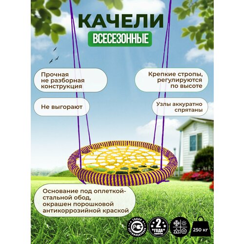 Детские Качели гнездо PREMIUM диаметр 120 см цвет обода Фиолетовый-Желтый цвет сети Желтый толщина каната обода и сети 14 мм