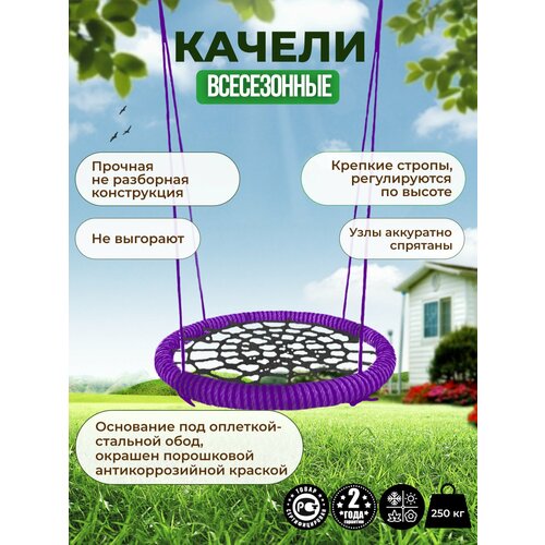 Детские Качели гнездо PREMIUM диаметр 120 см цвет обода Фиолетовый цвет сети Черный толщина каната сети и обода 14 мм