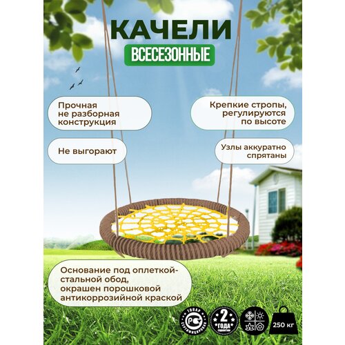 Детские Качели гнездо PREMIUM диаметр 120 см цвет обода Коричневый цвет сети Желтый толщина каната сети и обода 14 мм