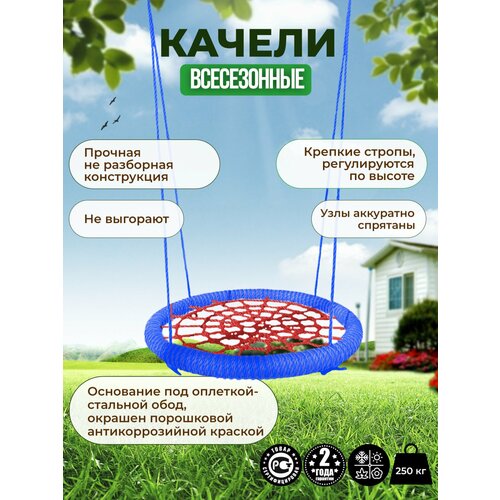 Детские Качели гнездо PREMIUM диаметр 120 см цвет обода Синий цвет сети Красный толщина каната сети и обода 14 мм