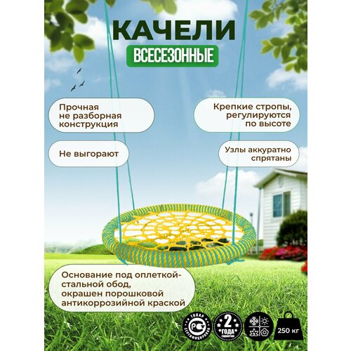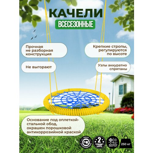 Детские Качели гнездо PREMIUM диаметр 100 см цвет обода Желтый цвет сети Синий толщина каната сети и обода 14 мм