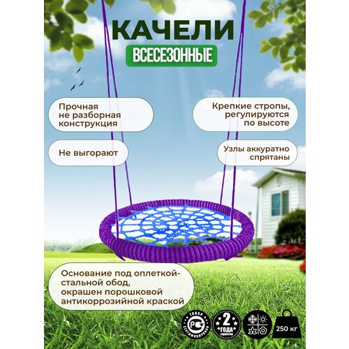 Детские Качели гнездо PREMIUM диаметр 120 см цвет обода Фиолетовый цвет сети Синий толщина каната сети и обода 14 мм