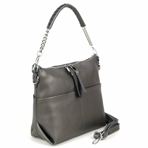 Сумка мессенджер К-2202-208 Пеарл Грей повседневная, натуральная кожа, серебряный