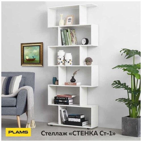 Стеллаж «Стенка Ст-1», размер ШхГхВ:71х25х170см, 6 полок, цвет:белый, материал:ЛДСП