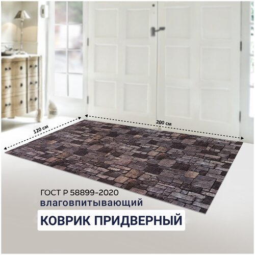 Коврик-дорожка вырезной шахинтекс придверный влаговпитывающий 120х200 Брусчатка серо-бежевый
