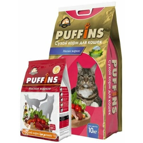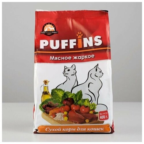 Сухой корм Puffins для кошек, мясное жаркое, 400 г, 1 шт.