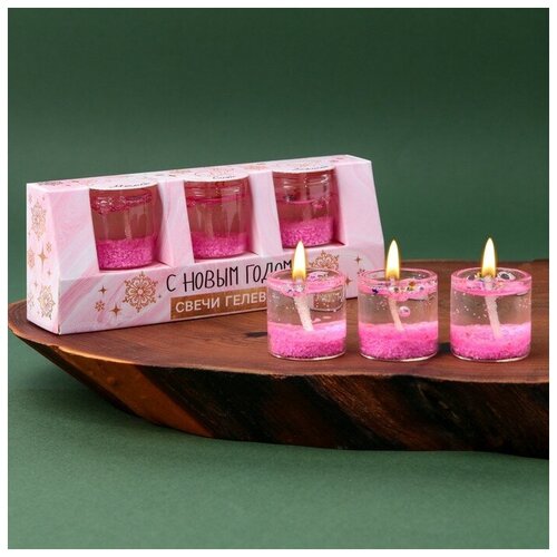 Новогодние гелевые свечи (3 шт.) «С Новым годом!», без аромата, набор