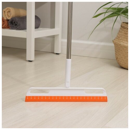 Водосгон для пола поворотный Raccoon, 2-х секционный, черенок из нержавеющей стали, 35×6×81 см, цвет белый, оранжевый