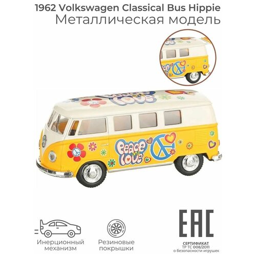 Металлическая машинка игрушка для мальчика Volkswagen T1 1962 Classical Bus Hippie van / Машина инерционная коллекционная / Цвет-сюрприз