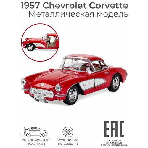 Металлическая машинка игрушка для мальчика 1957 Chevrolet Corvette / Машина инерционная коллекционная ретро Шевроле Корветт / Цвет-сюрприз