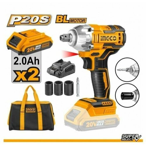 Аккумуляторный бесщеточный ударный гайковерт INGCO CIWLI2038 электроинструмент, подарок на день рождения мужчине, любимому, папе, дедушке, парню