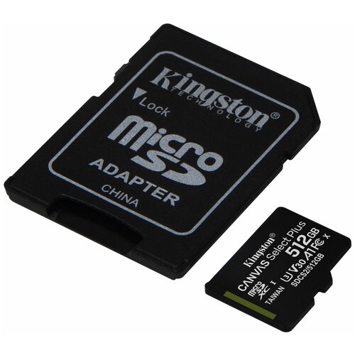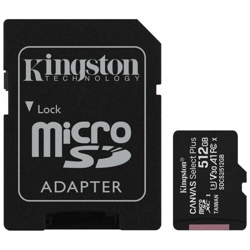 Карта памяти microSDXC UHS-I U3 Kingston Canvas Select Plus 512 ГБ, 100 МБ/с, SDCS2/512GB, 1 шт., переходник SD