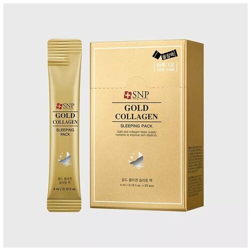 SNP Gold Collagen Sleeping Pack Антивозрастная ночная маска для лица с коллагеном и золотом, 20 шт * 4 мл