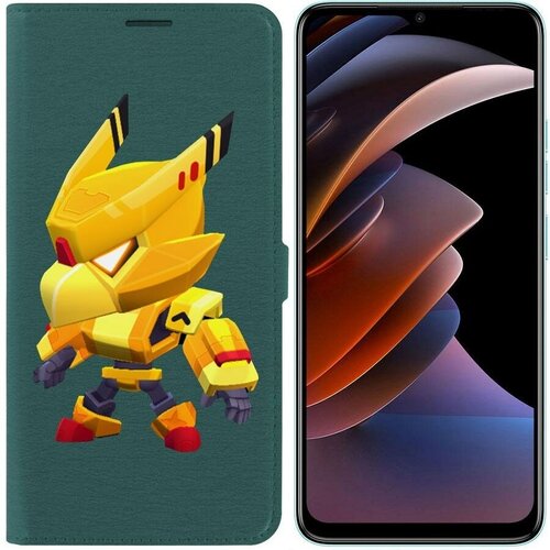 Чехол-книжка Krutoff Eco Book для TECNO Spark Go 2023 Brawl Stars-Ворон Золотой Меха (зелёный опал)