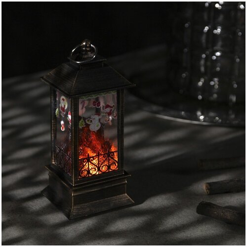 Светодиодная фигура «Камин с гирляндой» 5.5 × 13 × 5.5 см, пластик, батарейки AG13х3, свечение тёплое белое