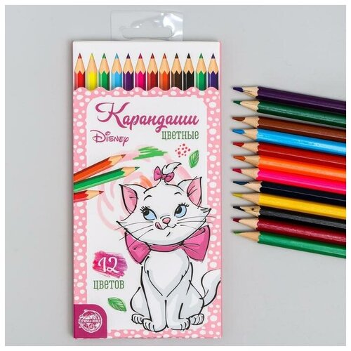 Карандаши 12 цветов "Кошечка Мари", заточенные, шестигранные, картонная упаковка, европодвес, Коты Аристократы (1 шт.)