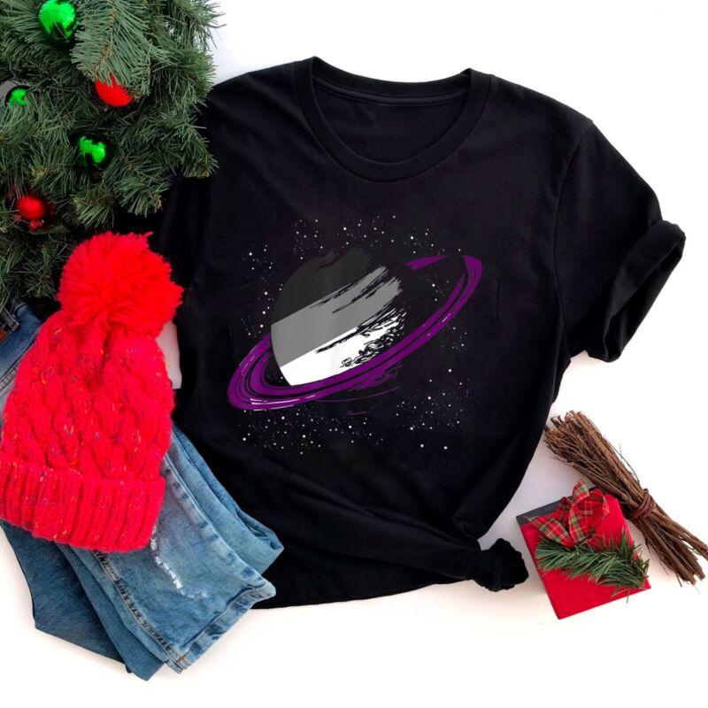 Асексуал Ace Pride Month Saturn Queer Lgbtq Асексуальный Печатный Черный Ретро Футболка Мужчина Летний Топ Tee Хип-Хоп Рубашка