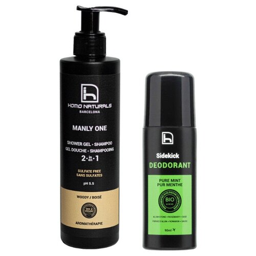 Мужской набор 2-в-1 гель ль для душа и дезодорант с мятой Homo Naturals
