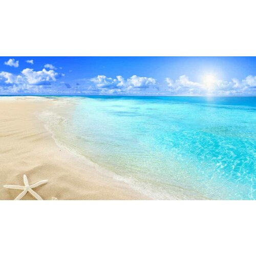 Постер на экокоже 60x110 LinxOne "Starfish beach sand sea sun" интерьер для дома / декор на стену / дизайн