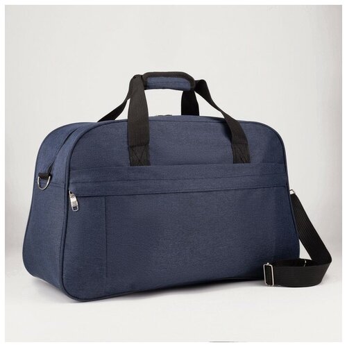 Сумка дорожная на молнии, наружный карман, длинный ремень, цвет синий