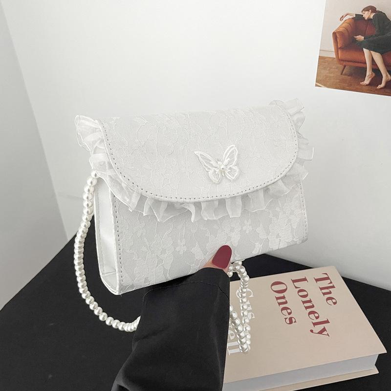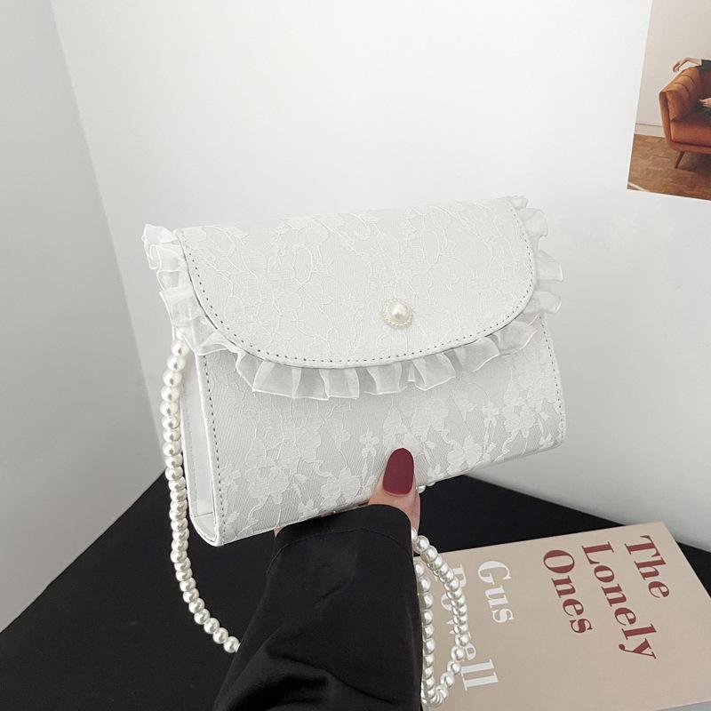 Sweet wind lace oblique span small bag fashionable small fresh popular pearl chain shoulder bag