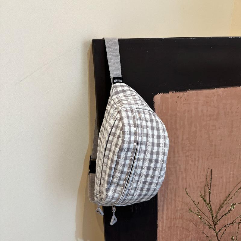 Cute new light and sweet plaid large capacity beautiful shoulder messenger bag breast bag fanny pack