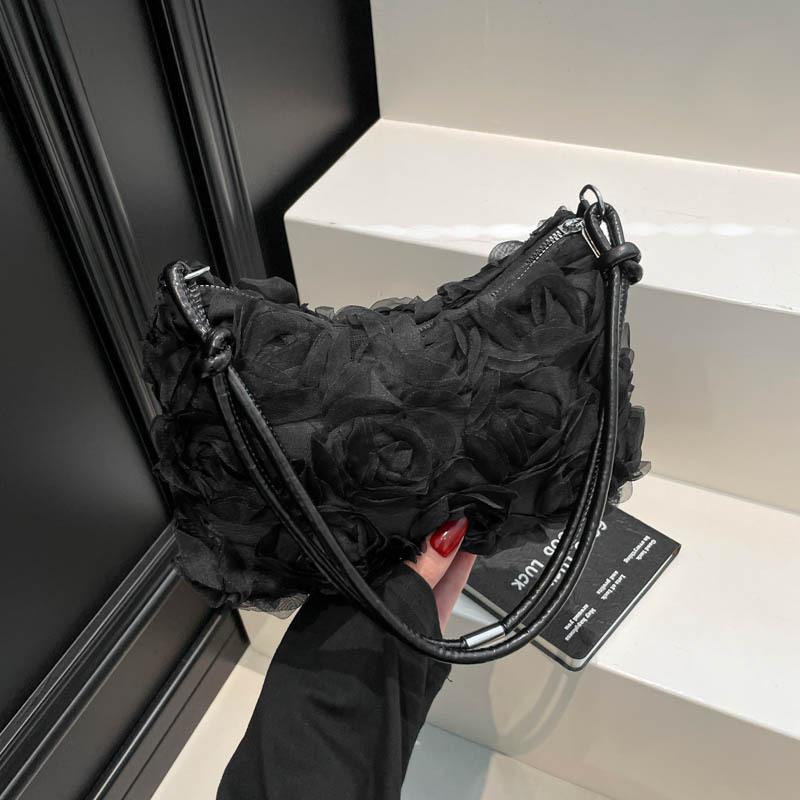 Autumn and winter new fashion armpit bag small fresh simple casual shoulder bag sweet flower handbag чёрный