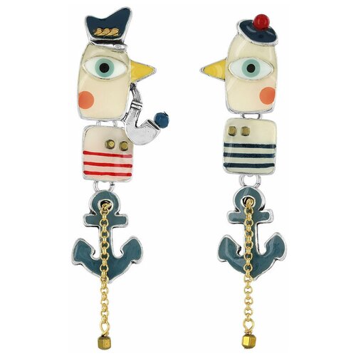 Серьги TARATATA, Hublot, асимметрия, с цветной смолой и бусинами, TT-E23-02916-10M серебристый