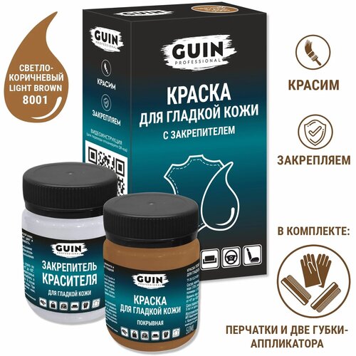 Краска для гладкой кожи темно-синяя 50 мл. + закрепитель 50 мл. Guin, краситель для гладкой кожи, восстановитель кожи