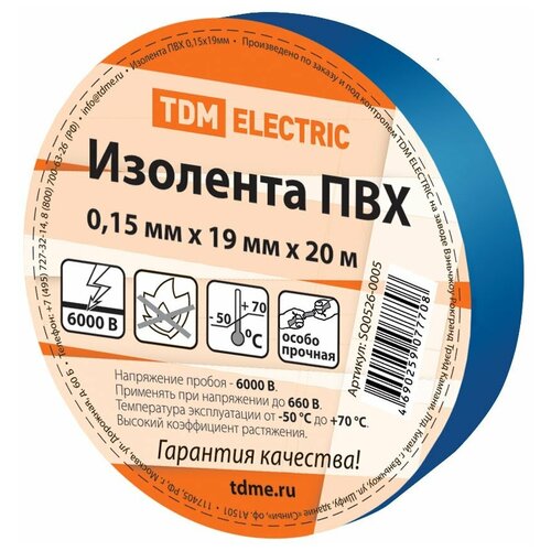 Изолента ПВХ 0,15х19мм синяя 20м TDM {SQ0526-0005}