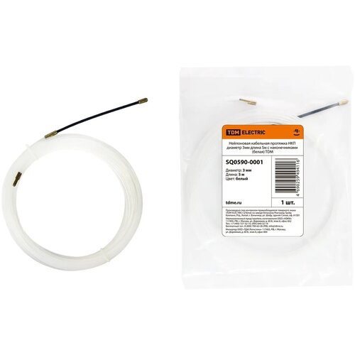 Нейлоновая кабельная протяжка TDM НКП диаметр 3мм длина 5м с наконечниками (белая) SQ0590-0001