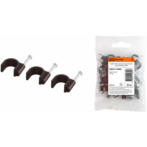 Скоба 12 мм круглая пластиковая (венге) (50 шт) TDM {SQ0514-0086}