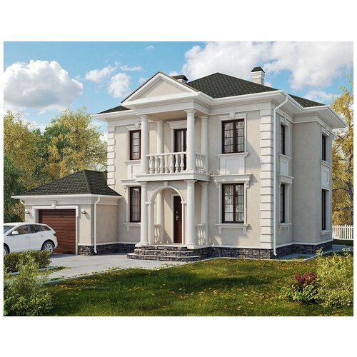 (211м2, 18х14м) Готовый проект двухэтажного дома из газобетона с мансардой и гаражом - AS-1384