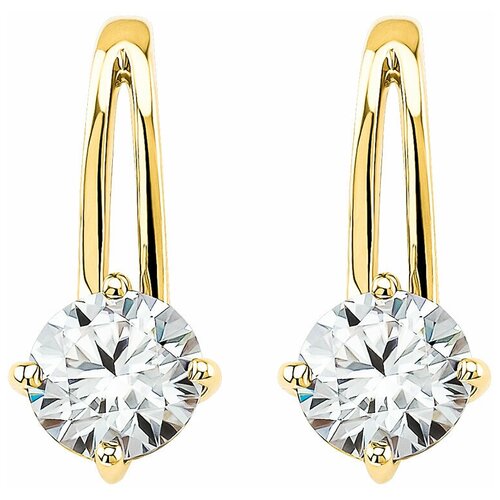 Серьги с английским замком из желтого золота 585 пробы с муассанитами "Две луны"