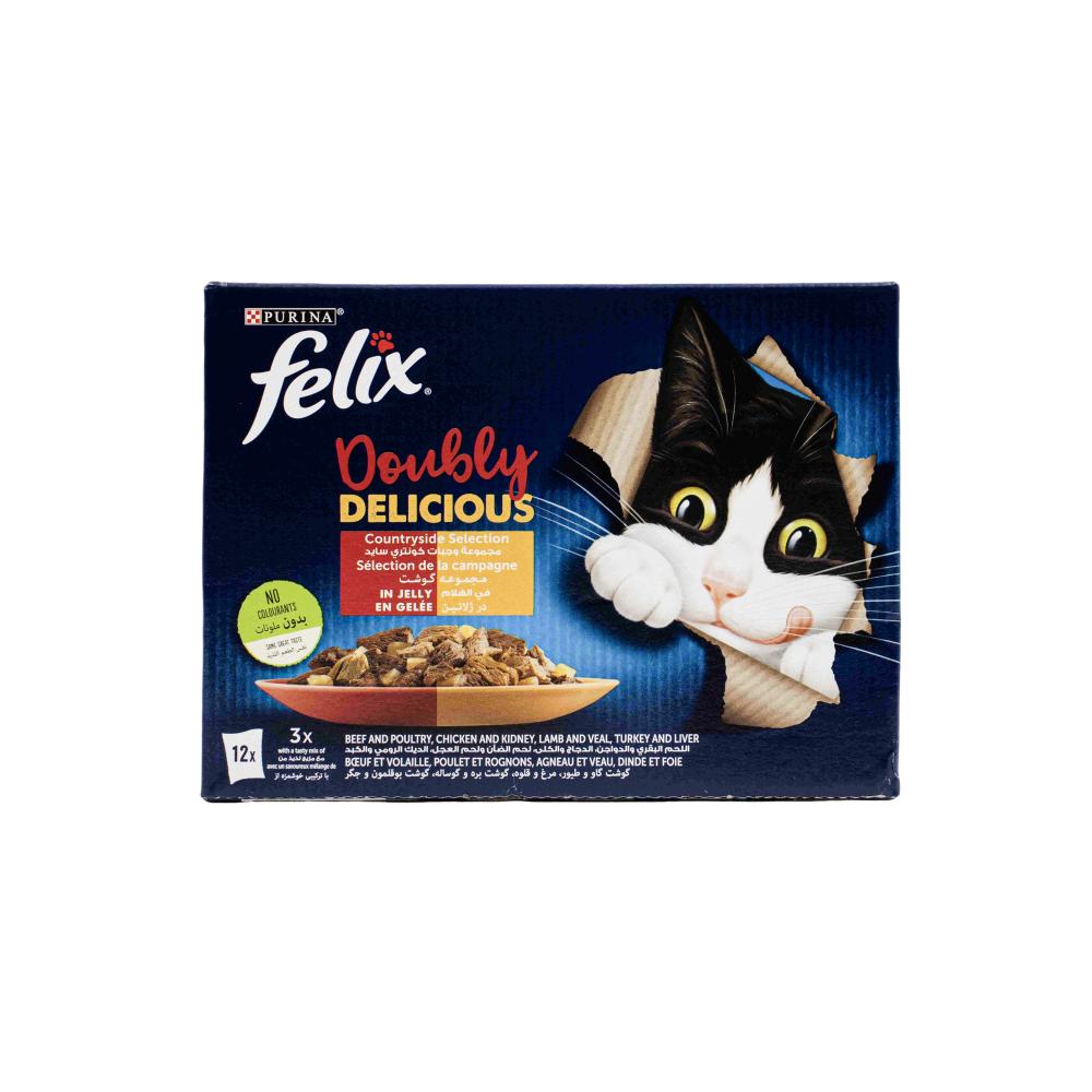 Felix / Wet cat food, Doubly delicious, Country side selection in jelly, 12 pcs x 3 oz (85 g)