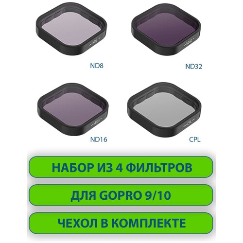 Набор из 4 светофильтров для GoPro 9 10 11 (защитный поляризационный CPL фильтр + ND8, ND16, ND32) TELESIN
