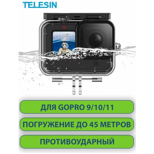Аквабокс водонепроницаемый защитный бокс чехол для подводного плавания и съёмки для экшн камеры GoPro Hero 9 10 11 Black Telesin