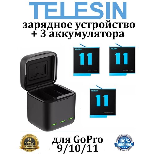 Карманное зарядное устройство Telesin на 3 аккумулятора для экшен-камер GOPR0 hero 9/10/11, GP-HPK-011