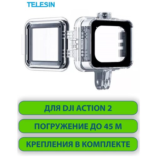 Аквабокс водонепроницаемый защитный бокс чехол для подводной съёмки для экшн-камер DJI Action 2 Power и Dual Screen Combo Telesin для экранного модуля