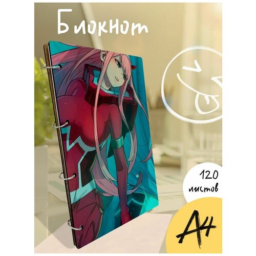 Тетрадь со сменными блоками на кольцах, A4 120 листов с деревянной обложкой, аниме любимый во франксе - 244