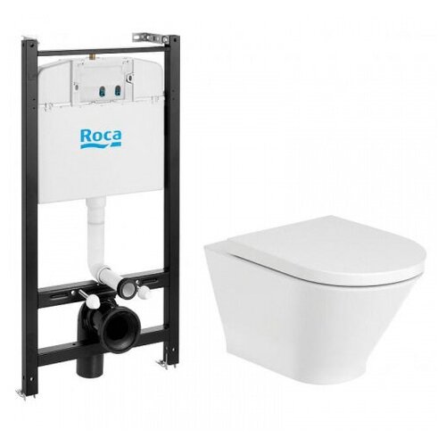 Roca Комплект унитаза с инсталляцией Roca The Gap Round Pack Rimless 893105000 с сиденьем Микролифт без клавиши смыва